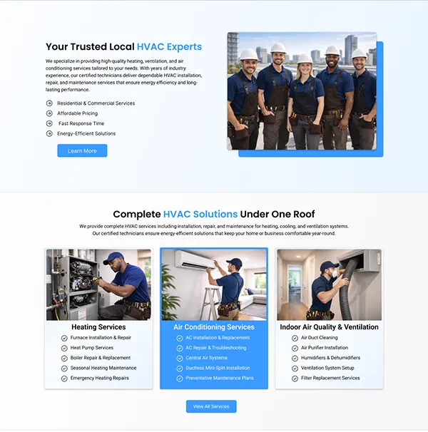 As an experienced HVAC website designer, I build clean, modern and conversion oriented layouts based on your brand identity and business goal.