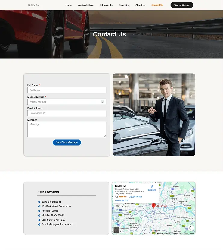 It is also an important page where you need to show your address with Google Maps, so that customers can reach your dealership easily.
